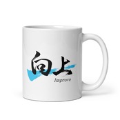 Kanji 向上/Improve Japanese Calligraphy White Mug
