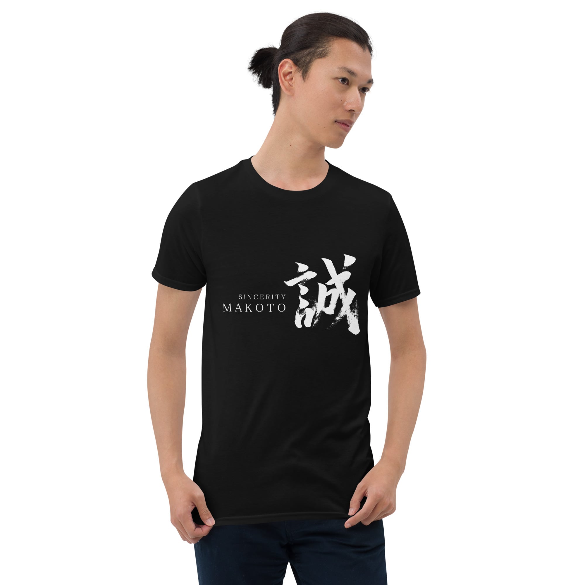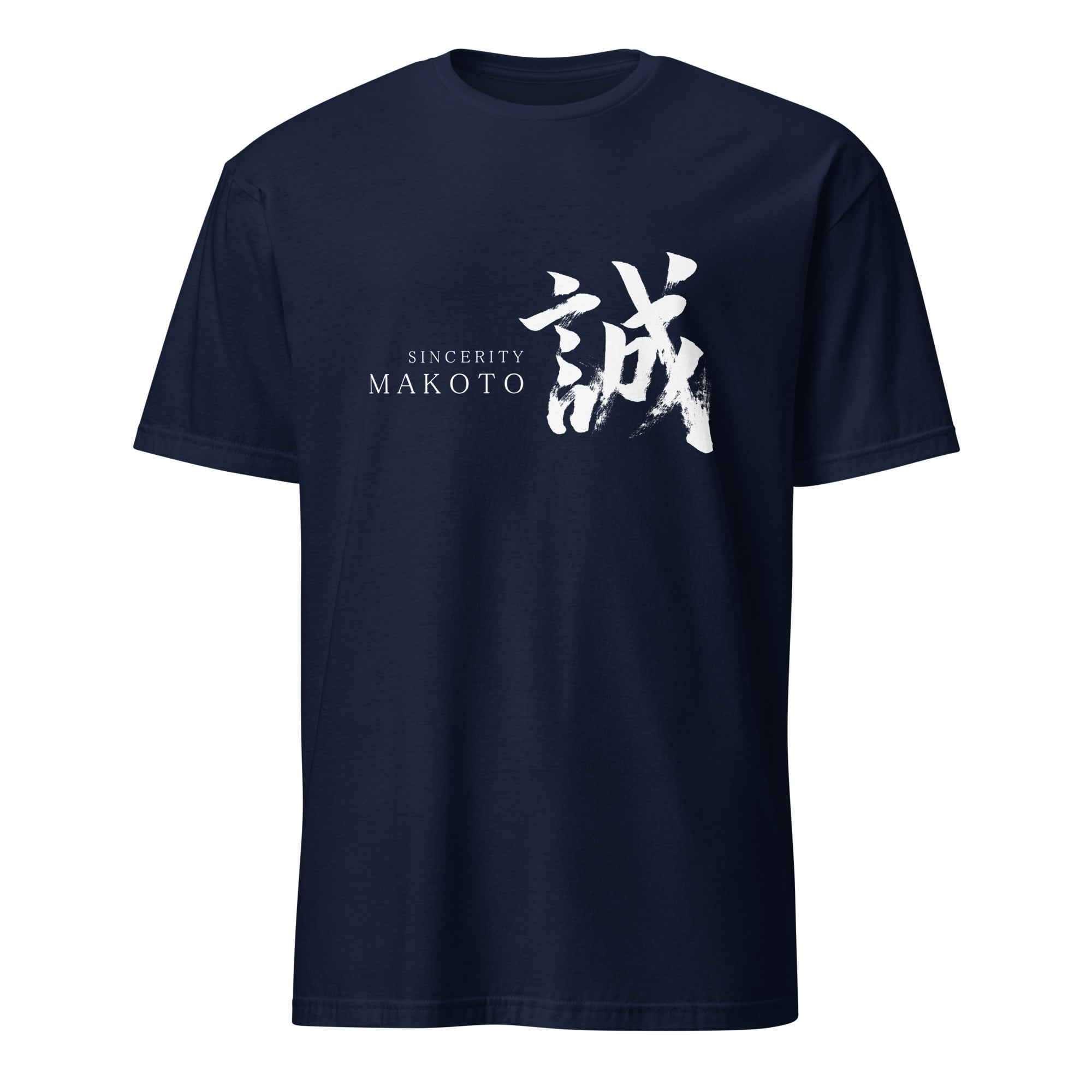 Designed with Japanese calligraphy. "誠/Sincerity" is printed on a T-Shirt. This Japanese Kanji for sincerity is pronounced "Makoto" in Japanese.