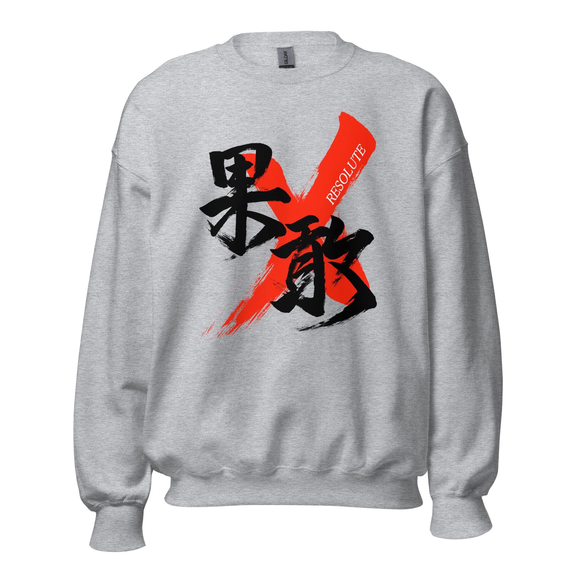 Designed with Japanese calligraphy. The kanji "果敢/Kakan" used on this sweatshirt means "Resolute" in English. This product may make you feel like a Japanese Samurai.